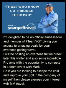 Quote Code TEAMYGT-MARKMcG Call Mark to discuss your travel plans.